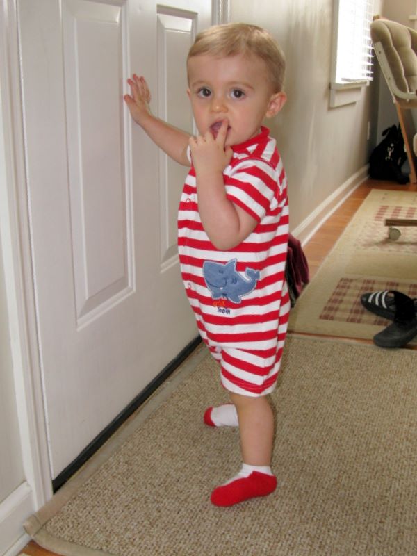 Nathan Web Page 1yr to 18m -- I can stand all by myself (with a little help from the door.)